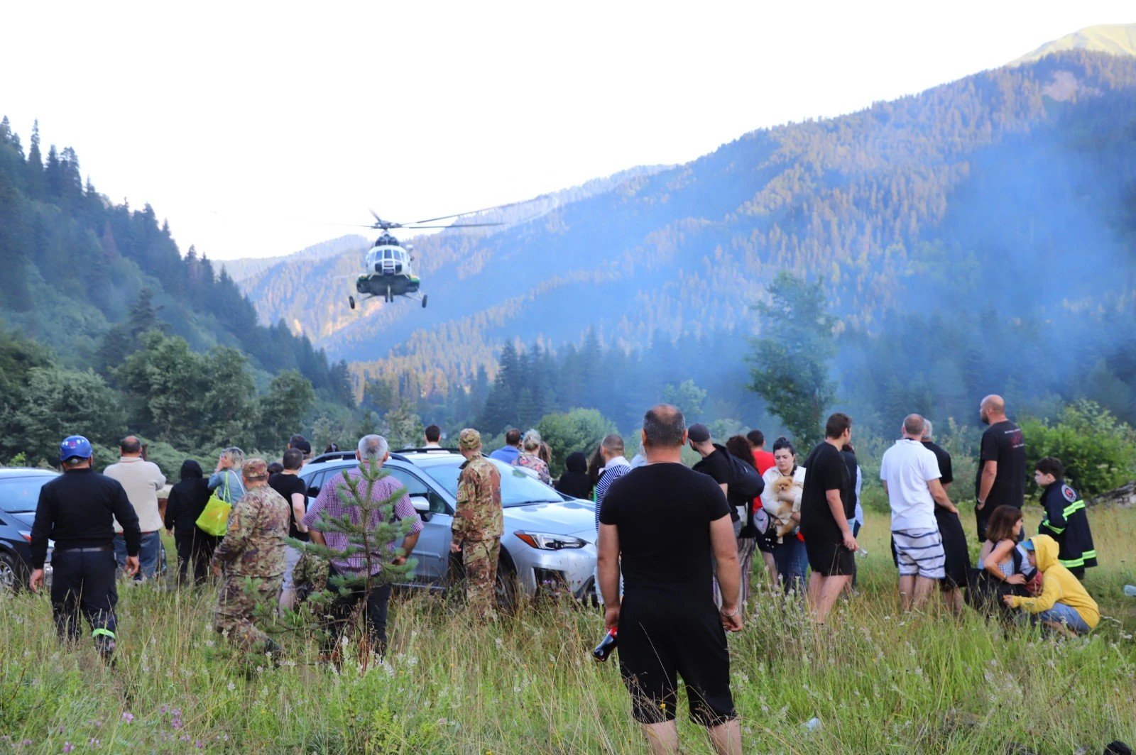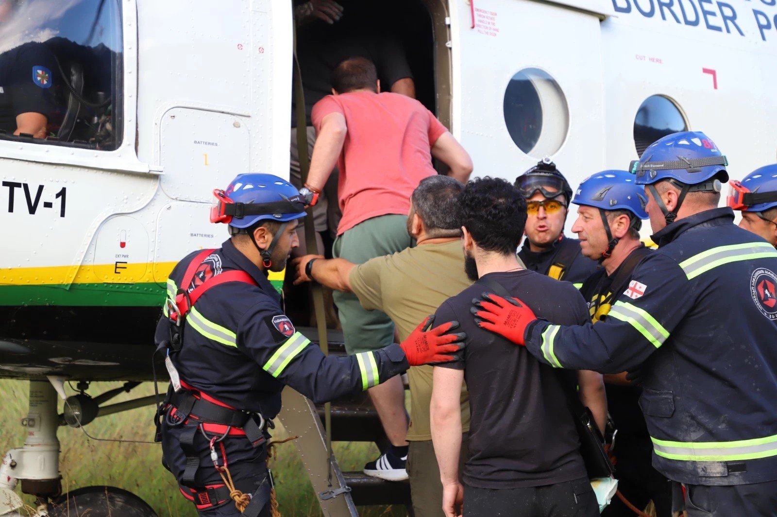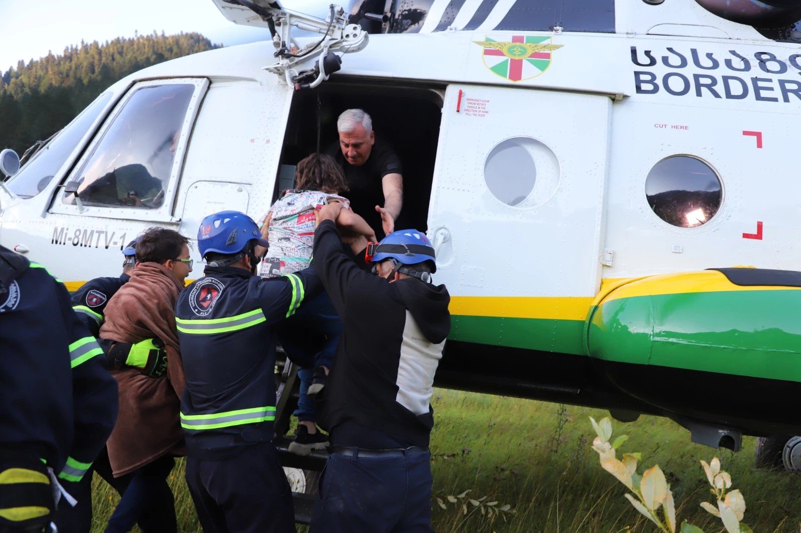 დილიდან, რაჭაში, სტიქიის ზონაში ჩარჩენილი 140 ადამიანი, მათ შორის ბავშვები, ვერტმფრენებით გამოიყვანეს.