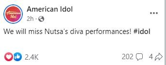 პროექტის დატოვების შემდეგ American Idol-ის ოფიციალურმა გვერდმა ქართველის ფოტო გამოაქვეყნა წარწერით: