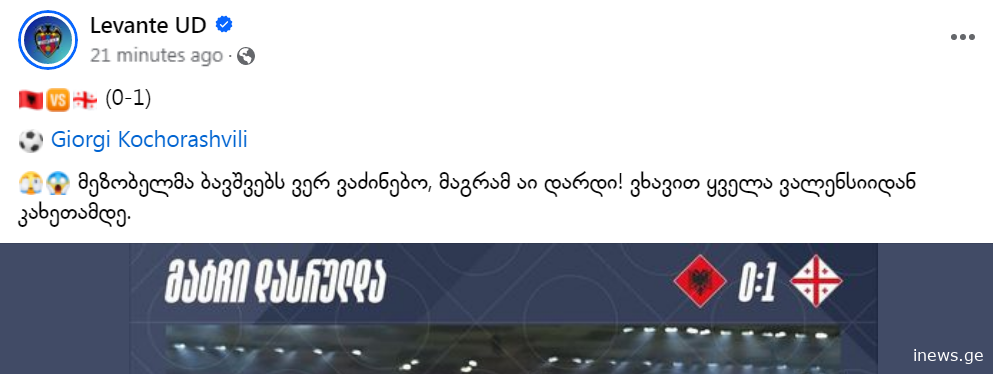“ლევანტეს” ადმინი ხავი გიორგი ქოჩორაშვილის გოლს ეხმაურება და სოციალურ ქსელში პოსტს აქვეყნებს. elnews.ge