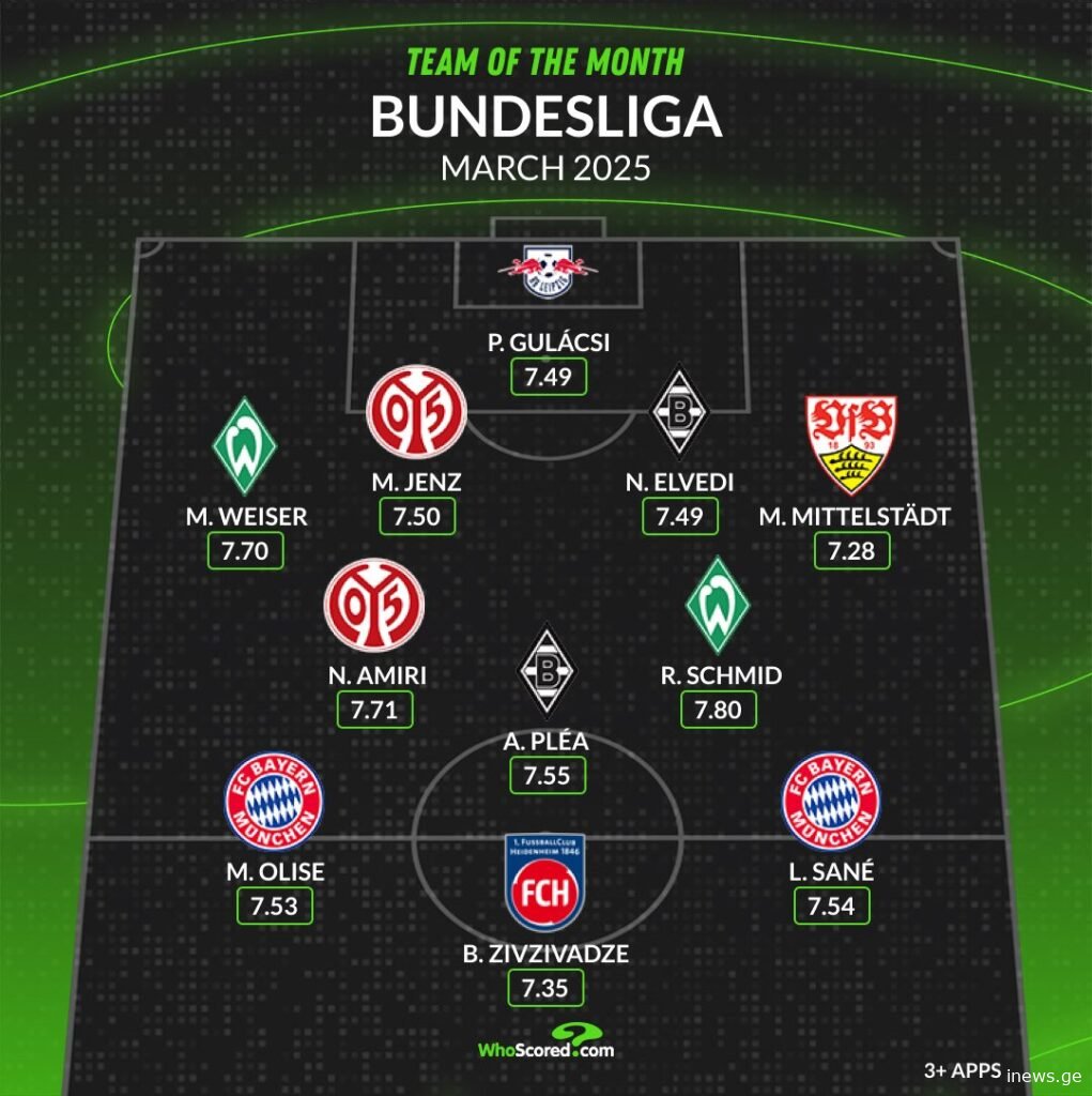ნახეთ გერმანიის ჩემპიონატის მარტის თვის საუკეთესო თერთმეტეული.